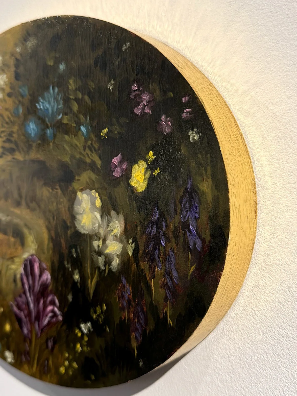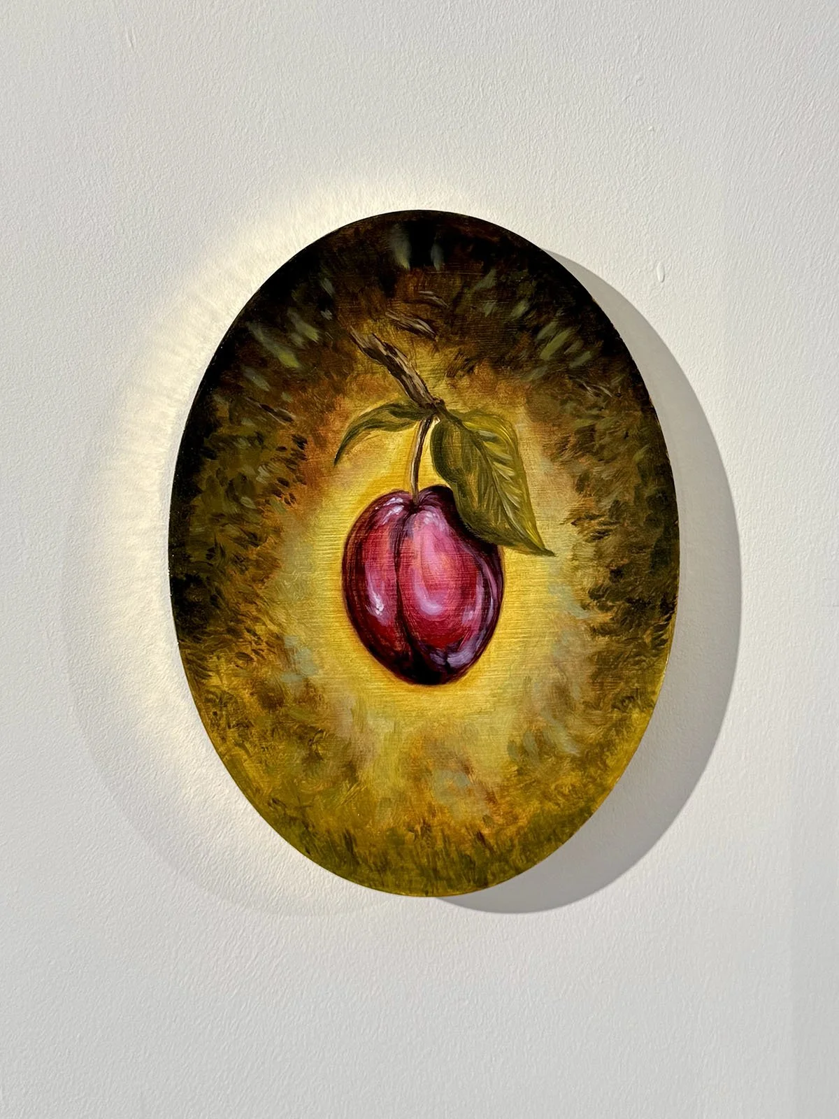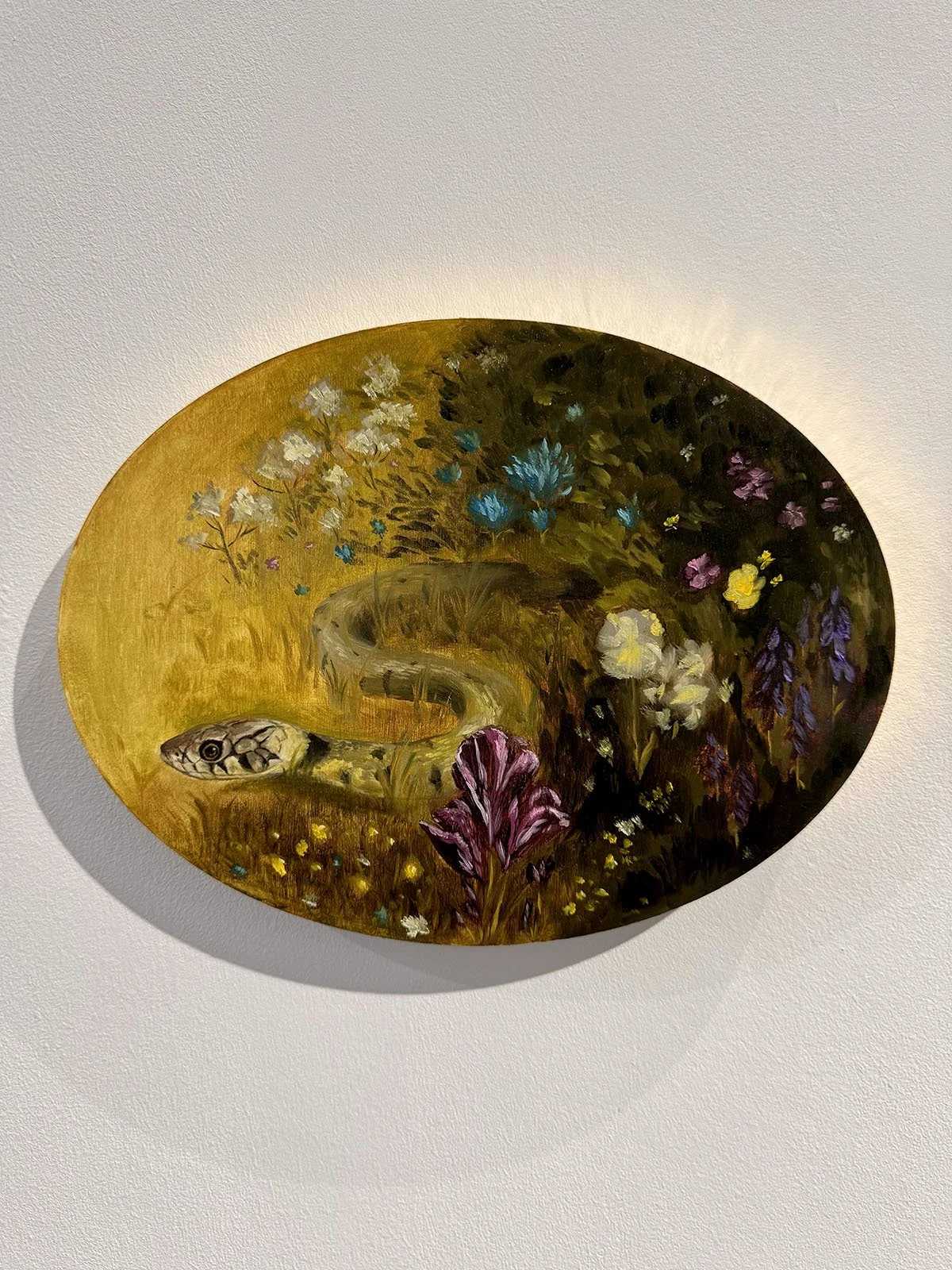 𝘒𝘯𝘰𝘸𝘭𝘦𝘥𝘨𝘦 𝘪𝘴 𝘗𝘰𝘸𝘦𝘳 (𝘗𝘭𝘶𝘮 𝘢𝘯𝘥 𝘚𝘦𝘳𝘱𝘦𝘯𝘵) - oil and metal leaf on wood, 30 x 22cm (2025)