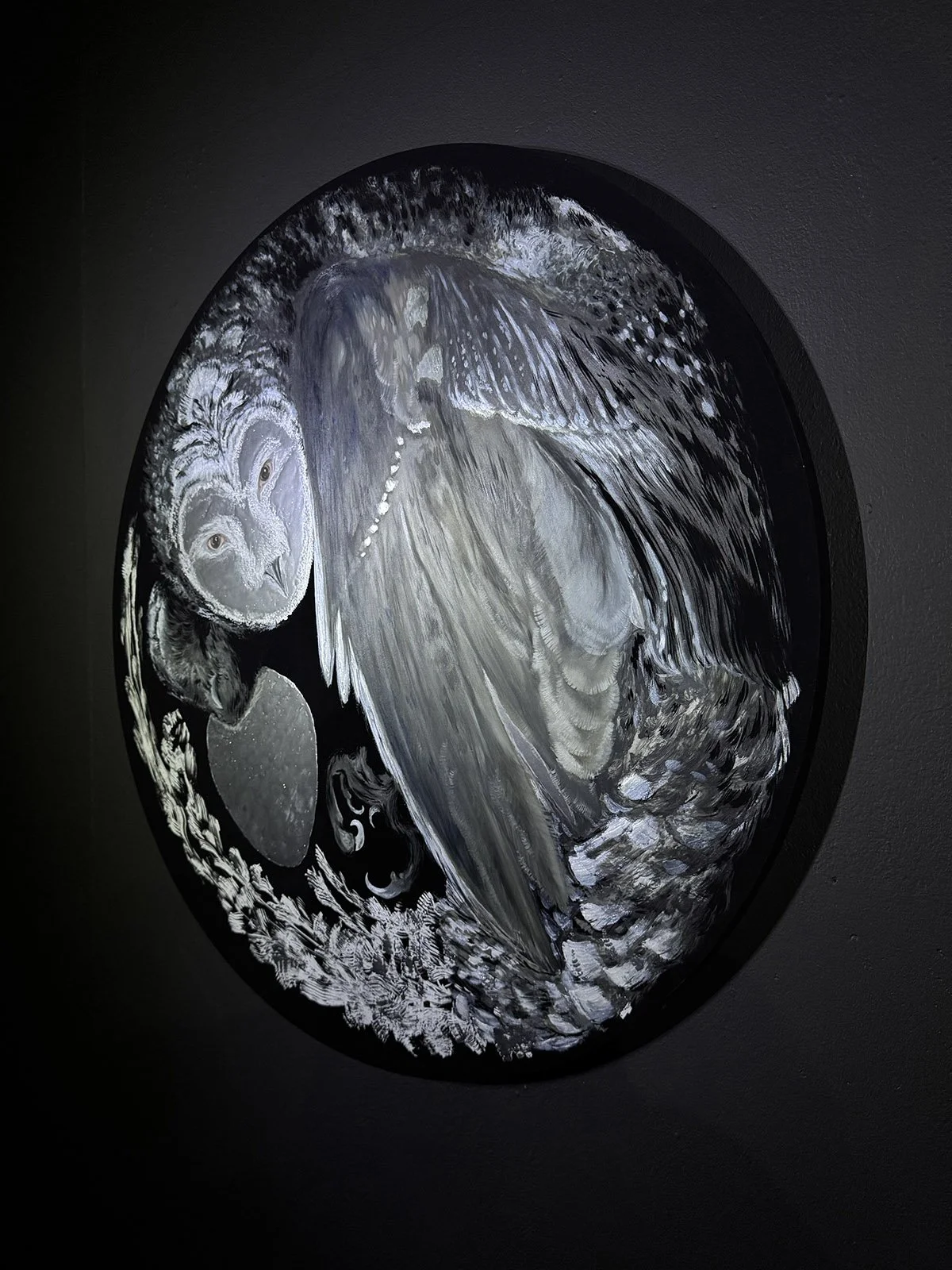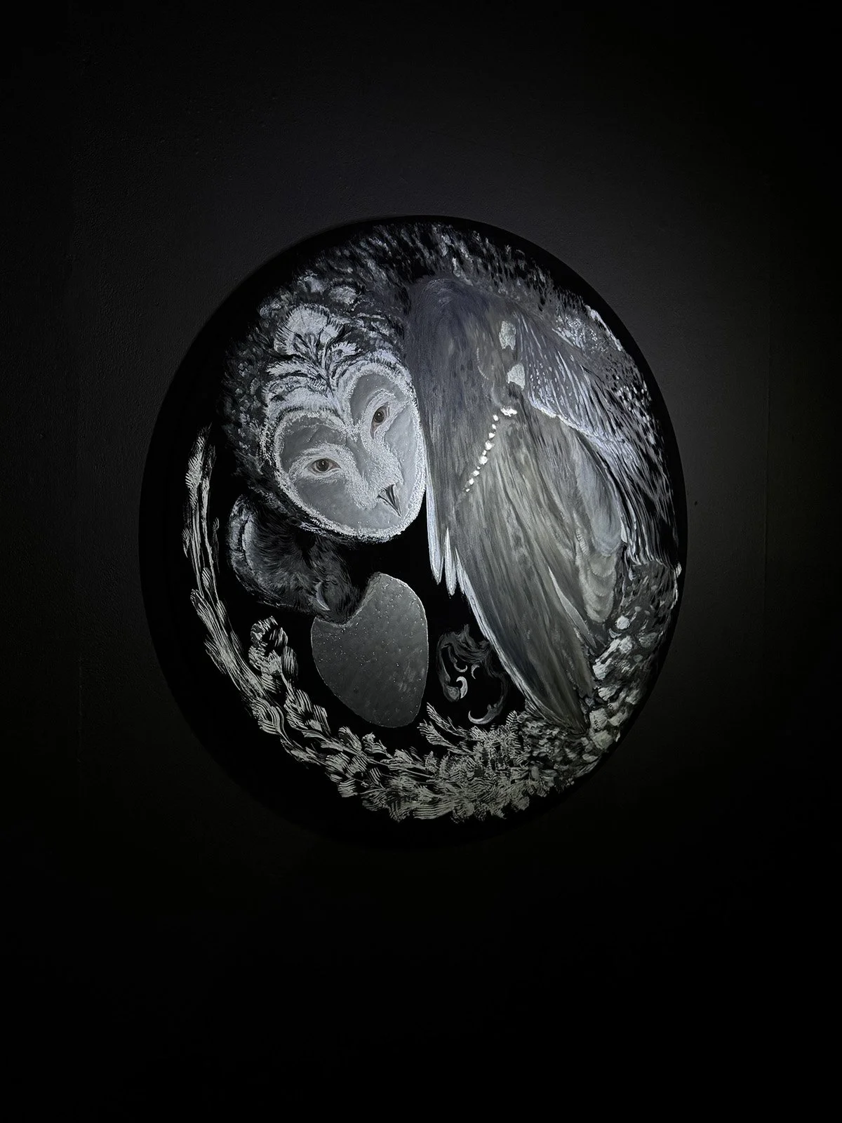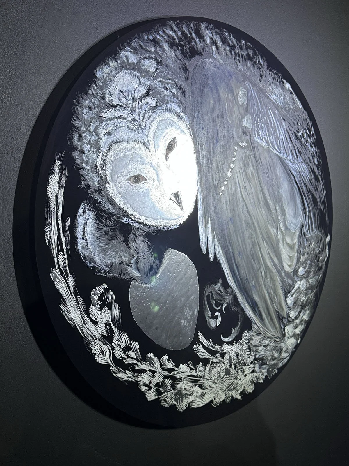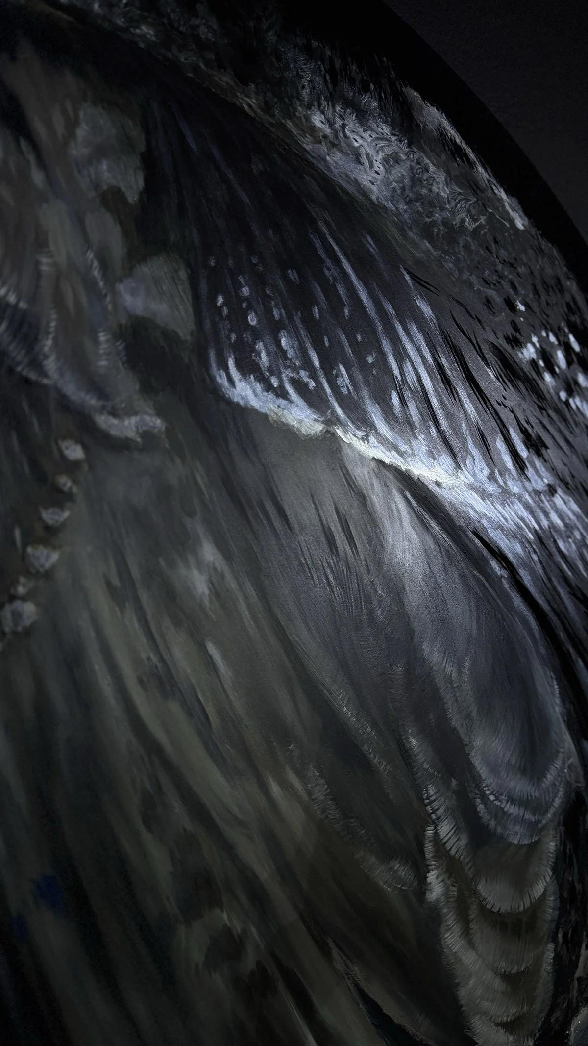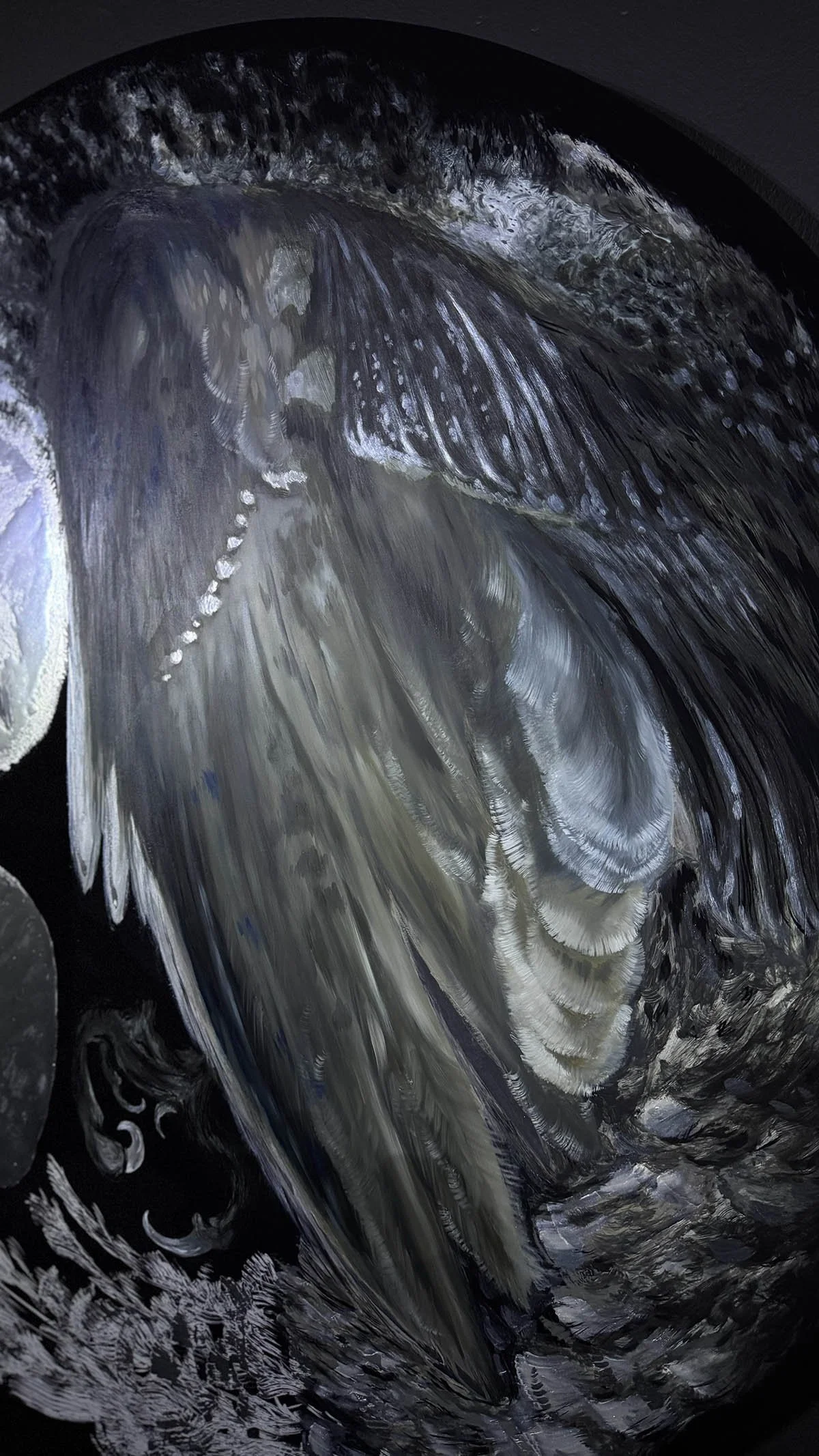 𝘚𝘪𝘮𝘶𝘳𝘨𝘩 | 𝘌𝘨𝘰 𝘋𝘦𝘢𝘵𝘩 - liquid chrome, acrylic and oil on wood, 1m diameter (2025)